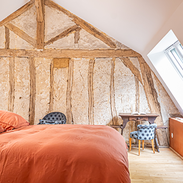 Au rez de chaussée de l’éco-gîte, la chambre « L’orée du Bois » est idéale pour être proche de la pièce de vie et la cuisine. Elle est traversante avec une fenêtre donnant sur le petit bois et le seul vis-à-vis des arbres, des chevreuils égarés ou des écureuils. Le mobilier saura vous surprendre par ses pièces détournées. Elle est composée d’une douche à l’italienne et d’un WC séparé.